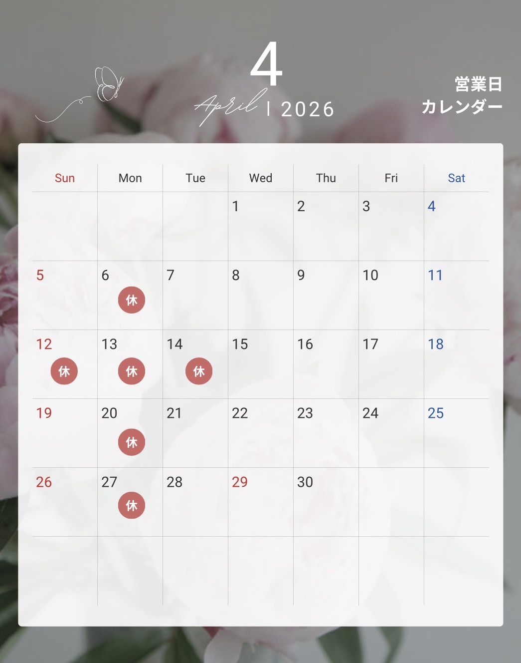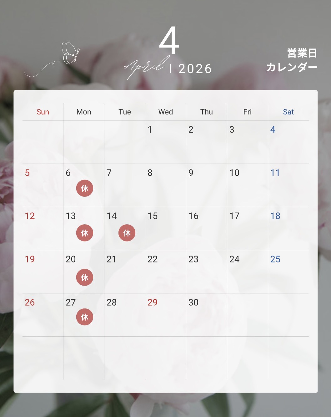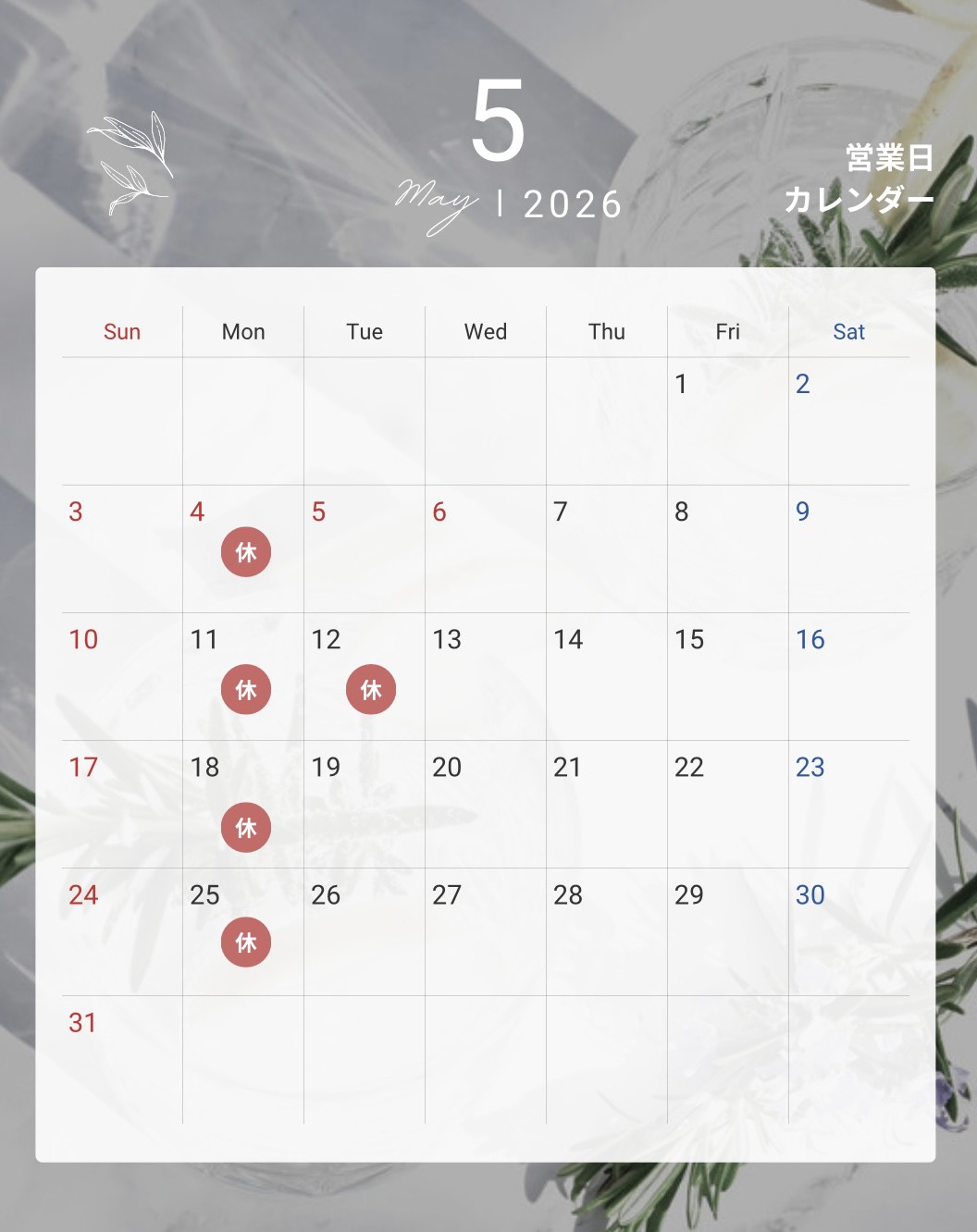 4.5月の営業カレンダーです。 早めの予約がおすすめです♪